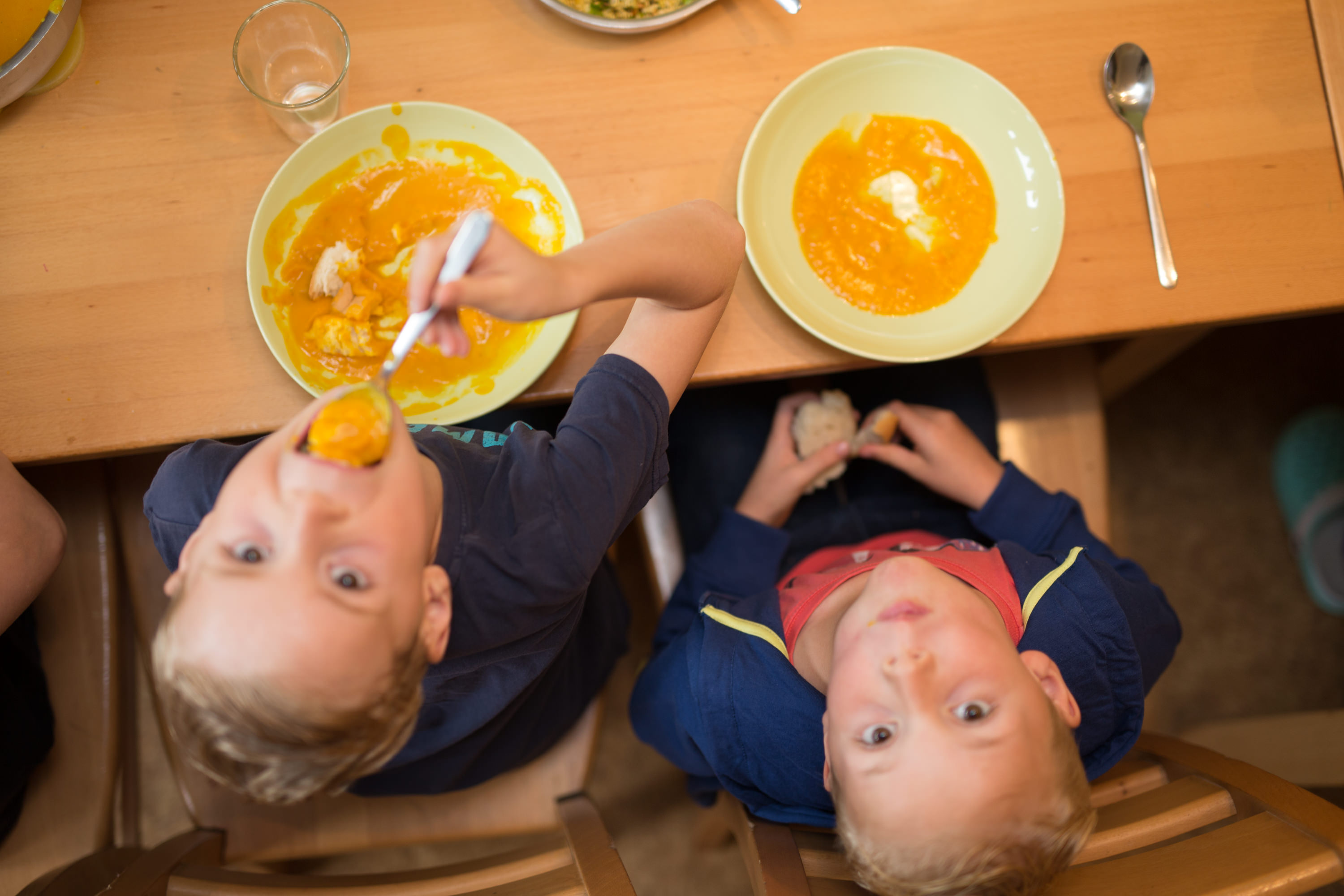 Neugierige Kinder beim Mittagessen
